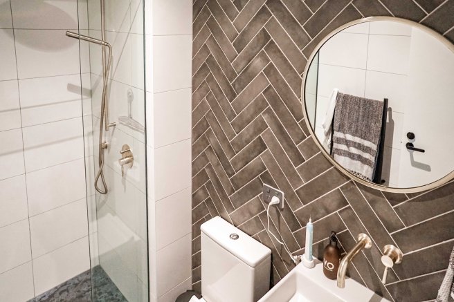 We’ll also do something clever with bathroom shelving. In the apartment, our vanity wasn’t wide enough for all the stuff we needed out and I used to have to leave my hot hair straightener on the floor to cool down, so we found a cool metal shelf that went with the vibe of our bathroom and tucked perfectly between the vanity and the wall. At Wonderview, the problem is different but the same – not enough space or storage in the bathroom. I’m looking forward to doing something clever with shelving to solve that.