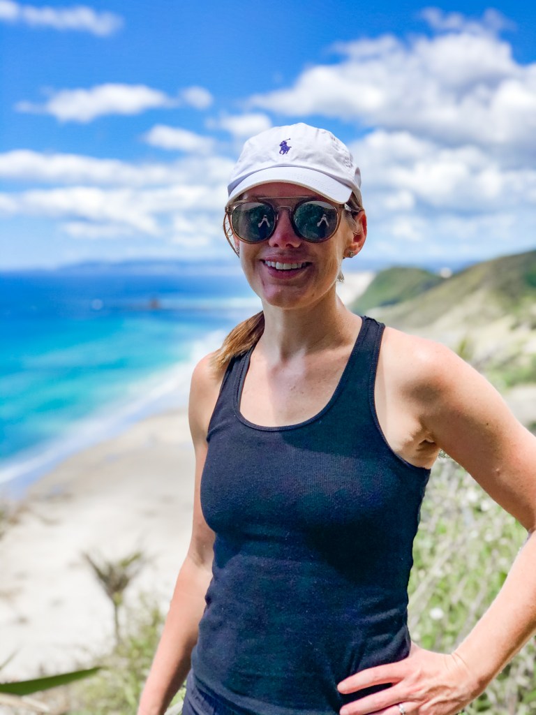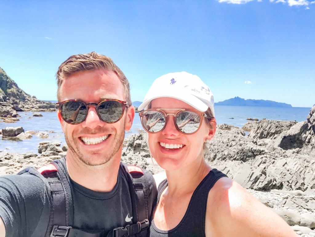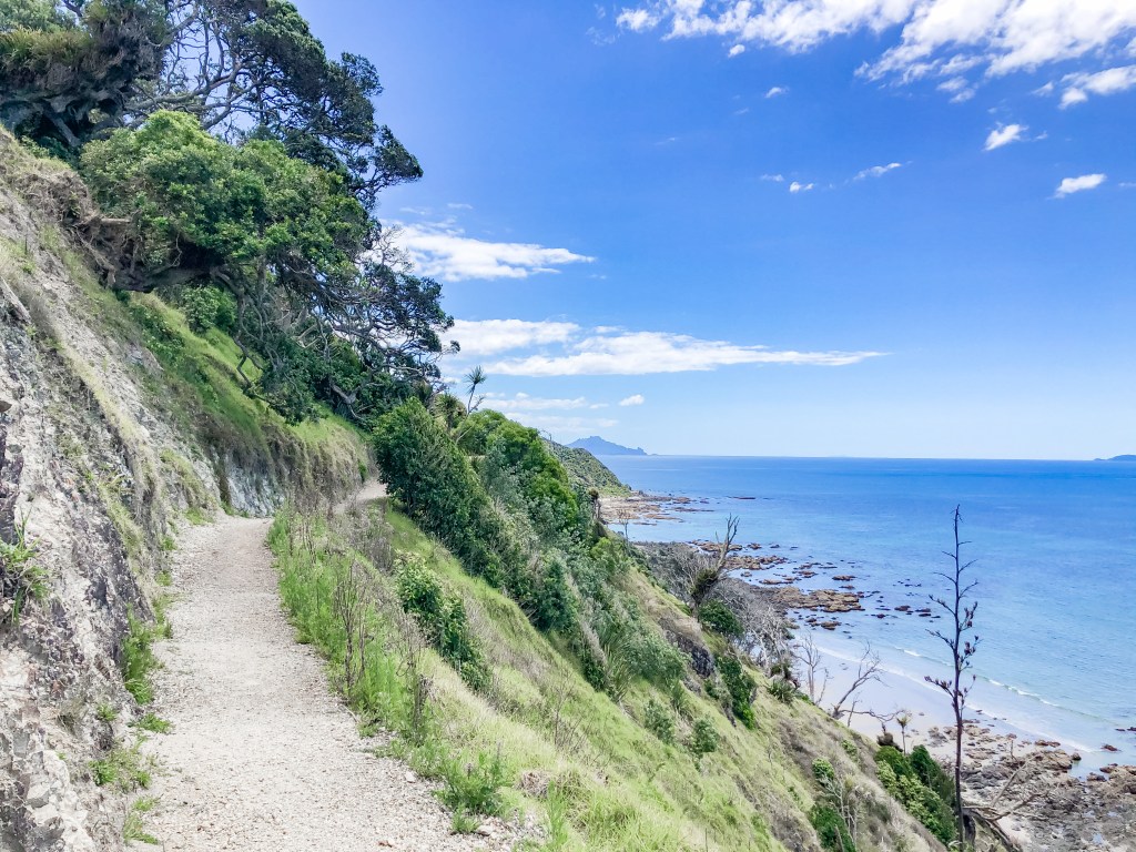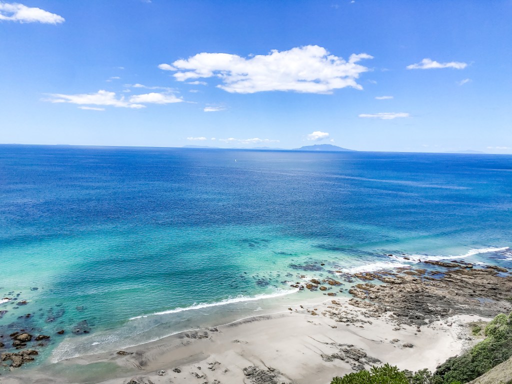 The next day was action day! With Amelie having a great time up north, we were able to park at the beach then cycle to the market for coffee and croissants. We grabbed some salami, camembert and a baguette to go, then cycled back to the beach to hike the Mangawhai Cliff Walk. I’ve done this walk before but never been able to finish it – we’ve just never had enough time! Thankfully, the tide was out and we were able to do the beach return rather than just turning around at the end and coming back along the same cliff track. The beach return is totally otherworldly – all the local beaches have fine, superset white sand, but the tiny, isolated beaches at the bottom of the cliff walk are rough and rocky. It’s not the easiest walk – you just have to keep a close eye on where your feet are – but it’s beautiful and so magical walking these rocky little coves with nobody else around you! We sat on a rock and ate our lunch staring out at the ocean. It was blissful.