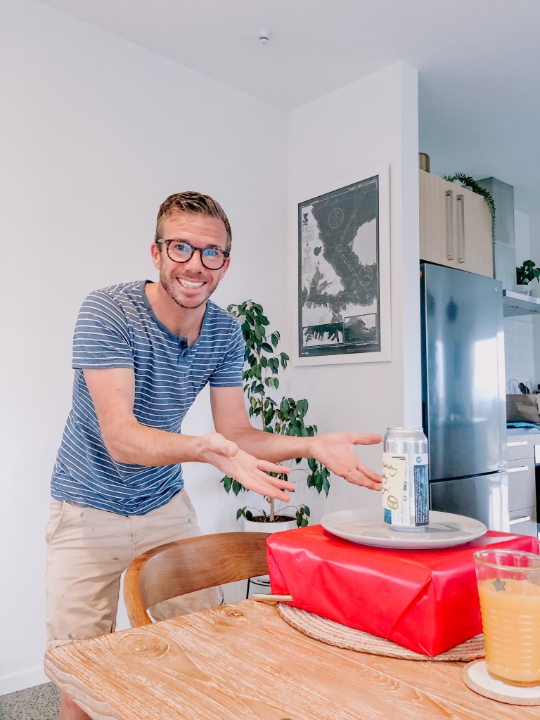Oh before I go, I feel like I should explain the beer on top of the gift. Hayden doesn’t drink beer with breakfast (no, not even on his birthday) but the ‘birthday beer’ has kind of become a tradition. It’s in place of a card. Hayden reads the message on the Post-Its, has a moment of ‘awww’ then throws the Post-Its in the bin (as he would a card – he is not sentimental like that!) and still gets to enjoy the beer later on. Win-win.