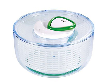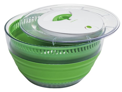Probably the top priority right now is a salad spinner. We’ve been eating a lot of salad this summer, thanks to the lettuce that grows prolifically in our vegetable garden, and I can’t see that ending anytime soon. The vegetable garden is still acting as if it’s midsummer – our capsicum has new flowers on it, for goodness’ sake. Anyway, using a colander to wash lettuce (and paper towels to dry it) has always worked fine previously, but salad spinners are just really way more efficient. Thing is, they’re big and clunky, and I just don’t really like how they look. This one, for example…