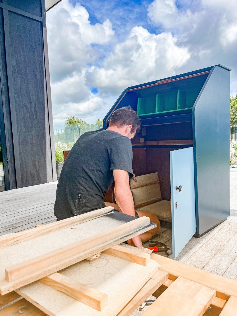 We’ve been all about the preloved things in February! Hayden unofficially kicked things off by finding an incredibly ugly drinks cabinet on Facebook Marketplace. Incredibly ugly until you look closer…it’s got great lines, but the slapped-on two-tone paint job isn’t doing it justice, in my opinion. We bought it sight unseen and figured we’d work out what it needs when we got it. Originally we thought it might be possible to strip the paint off back to wood, but the wood underneath is not of good enough quality for that. So far, we’ve taken out the ridiculous drawer set it used to house in the cupboard, and this weekend we intend to start sanding before painting it a glossy dark emerald on the outside, and black on the inside. To be clear, I think this weekend will be only sanding – it’s going to take a lot. What fun though!