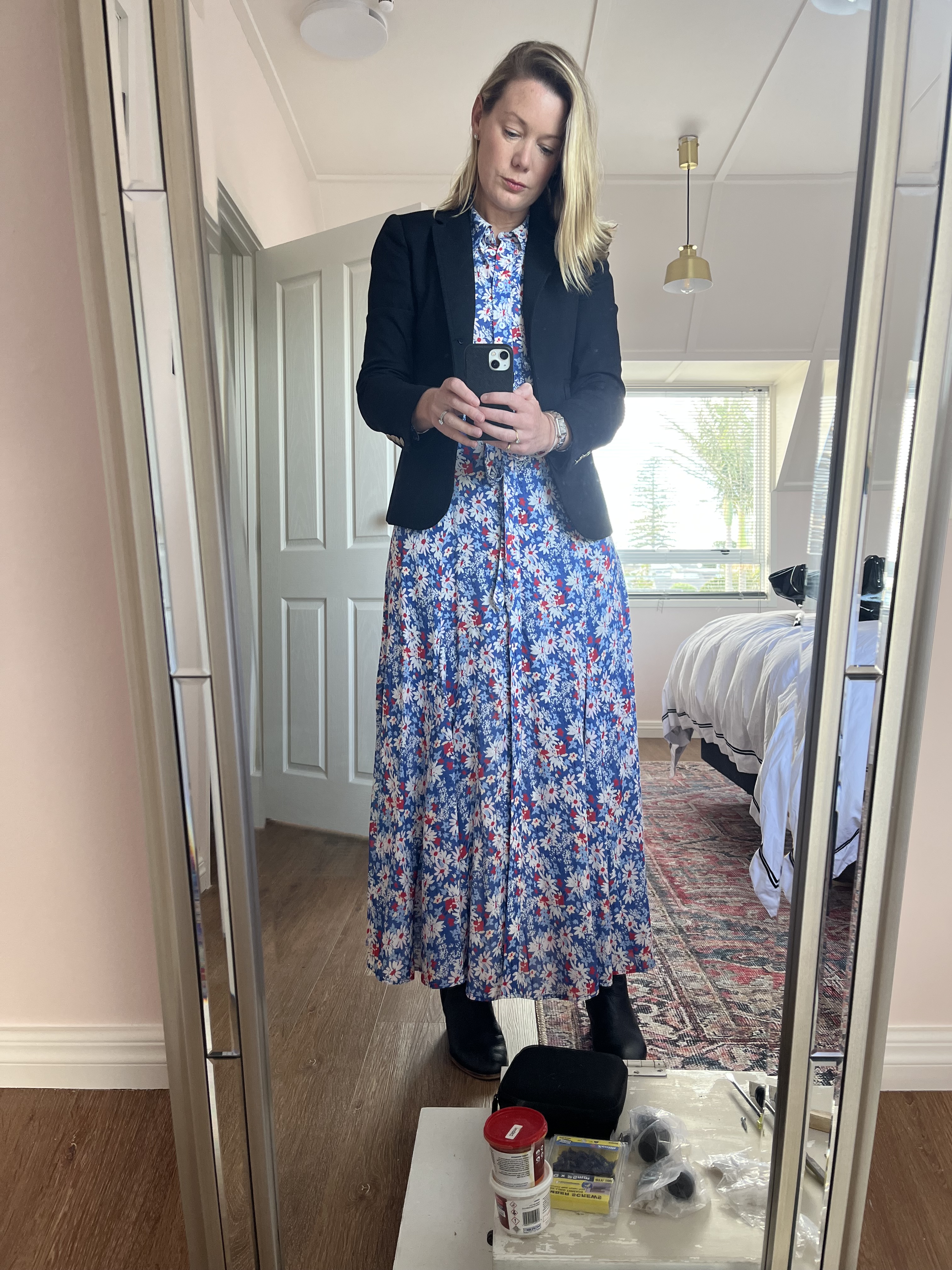 I love this dress so much. I had had my eye on it for ages, and I finally bought it for myself after I had been offered, and accepted, a new job that sees me going into an office at least a couple of times a week – I’ve got stuff to dress up for again! And, after a lot of renovations and therefore, a lot of days where we’ve spent the day schlepping around in old, paint-stained clothes, it feels really good to have the opportunity and the need to make myself look good and go out places. As you can see, we are still very much renovating (although calling it a building site may be a bit of an exaggeration) but that doesn’t mean there aren’t times to dress up…and I love it!